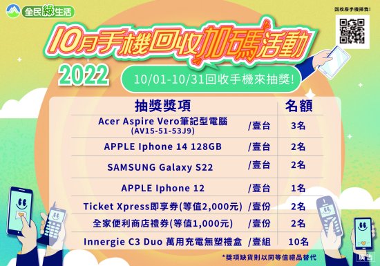 二、 | 本案活動係行政院環境保護署為推廣廢手機回收事宜,於活動期間辦理回收廢手機即可參加抽獎等加碼活動,於本市指定地點回收手機即可參加抽獎等加碼活動,相關指定地點詳如附件1。 |