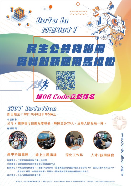 三、 | 本案為免費報名參加,報名時間由原訂110年9月17日(星期五)17時止,展延至110年10月8日(星期五)17時止,詳細報名資訊請見網址(https://www.ciot-datathon.org.tw/)。 |