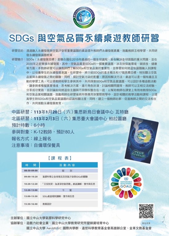 國立中山大學氣膠科學研究中心為培訓大學/高中/國中/國小空氣品質教育種子教師,強化國民對空氣品質之認知及重視,特規劃辦理旨揭研習,活動相關資訊如下: |