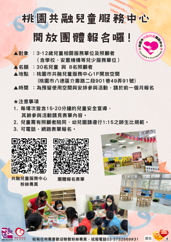 轉知桃園市政府社會局委託財團法人靖娟兒童安全文教基金會辦理「桃園市共融兒童服務中心」,詳閱附件宣導內容