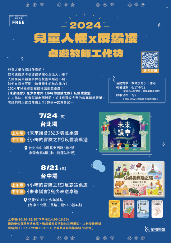 二、活動聯絡人:兒福聯盟北區知能推廣組 沈小姐 聯絡電話:(02)2799-0333分機561。