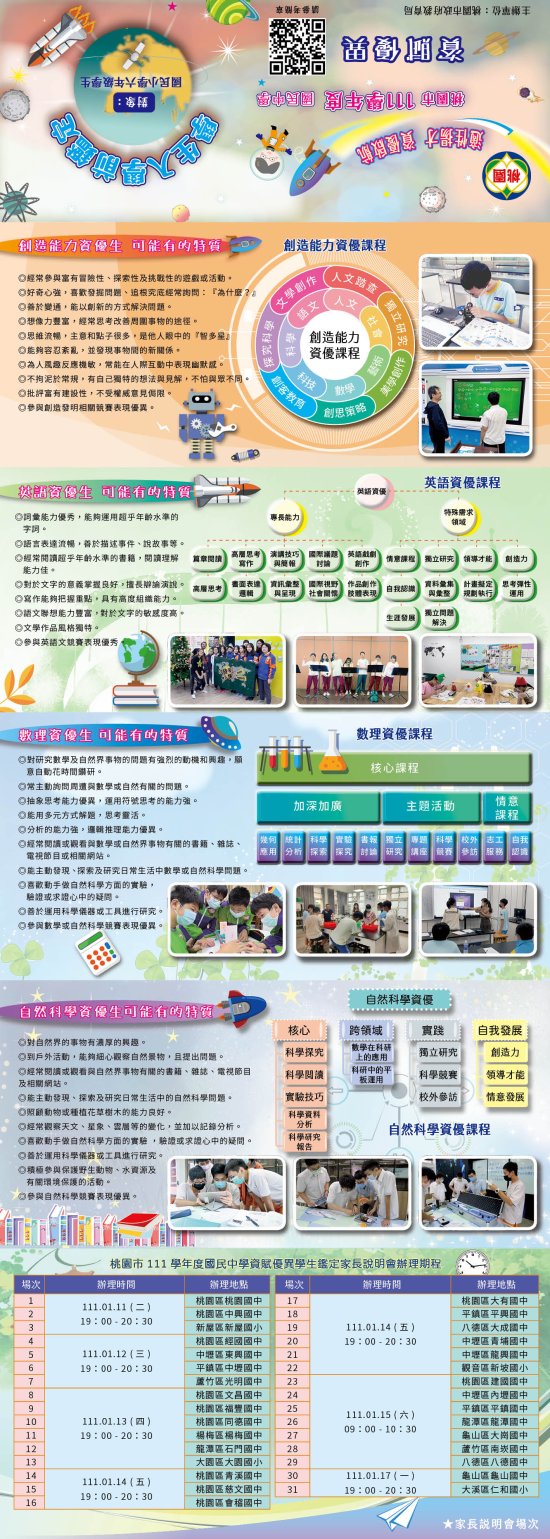 轉知111學年度國民中學資賦優異學生入學前鑑定宣導