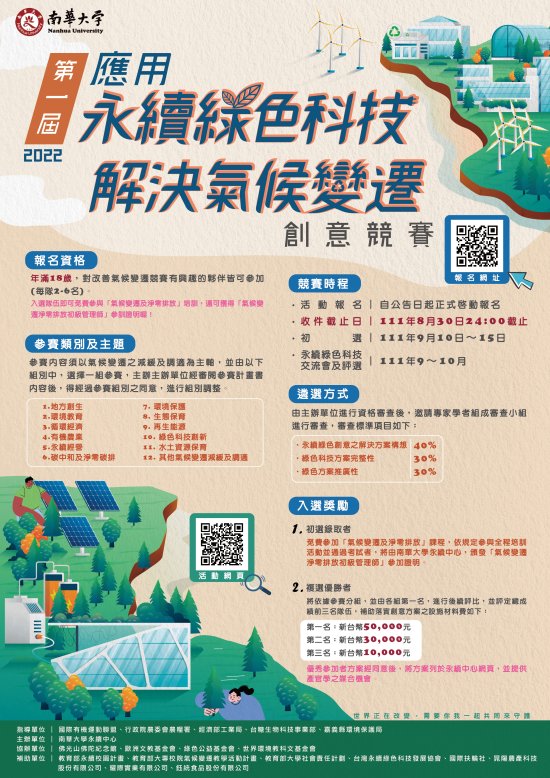 四、 | 活動資訊及切結書詳見報名網址:請參賽者至下方網址填寫報名表並上傳作品https://sites.google.com/nhu.edu.tw/2022ccasgtscc/ |