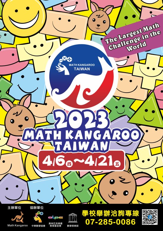 轉知中華數學協會於112年4月6日至4月21日期間於全國各級學校(國小、國中、高中)舉辦 「2023 Math Kangaroo Taiwan 袋鼠數學比賽」一案